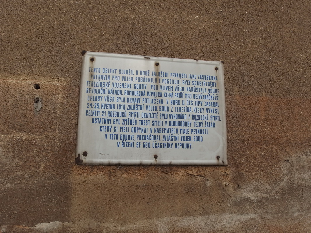 V rámci denného programu, ktorý by sme bez bicyklov určite nestihli, ešte navštívime malú pevnosť, Múzeum ghetta, Magdeburské kasárne s expozíciou, modlitebňu, krematorium, pietne miesto pri Ohře a prelezieme po pevnostných systémoch. Na druhý deň v pondelok 4.8.2014 je už v programe mesto Litoměřice, ale keďže je pracovný deň tak sa mi cestou do Litoměřic podarí urobiť ešte fotky adresy Haupstrasse 1, kde sú otvorené nejaké sklady a aj Bahnhofstrasse 3, kde nachádzam funkčné sklenárstvo.