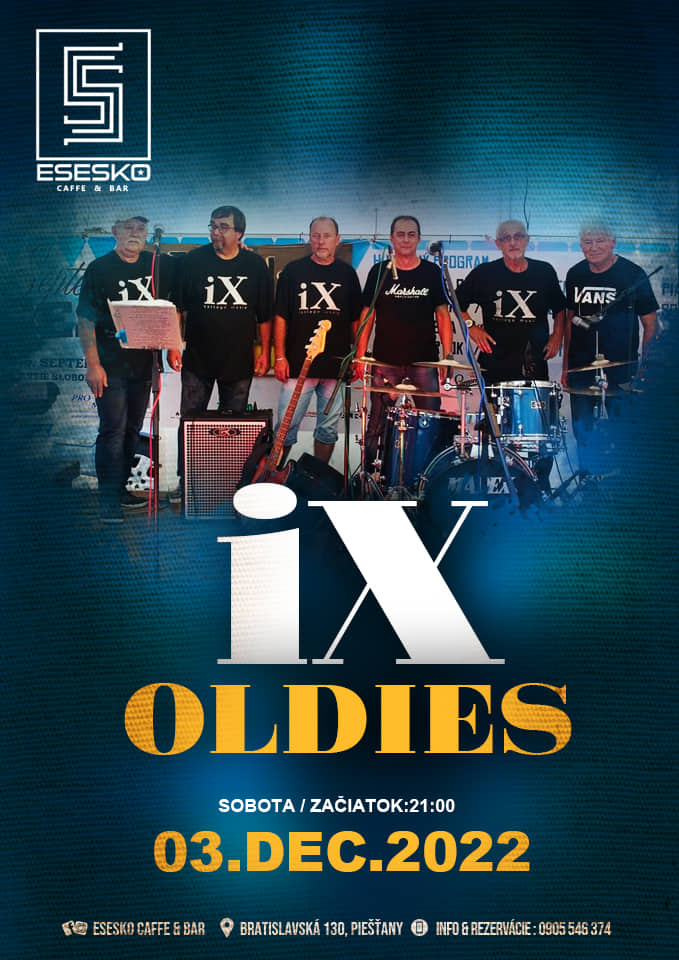 Už v sobotu 3. decembra si vychutnáte parádny live koncert skupiny iX Oldies✌️Tešiť sa môžete na večer plný najväčších hitov zo 70. a 80. rokov, ale aj súčasnosti, skvelú obsluhu a super atmosféru, ktorá k Esesku už tradične patrí dlhé roky.