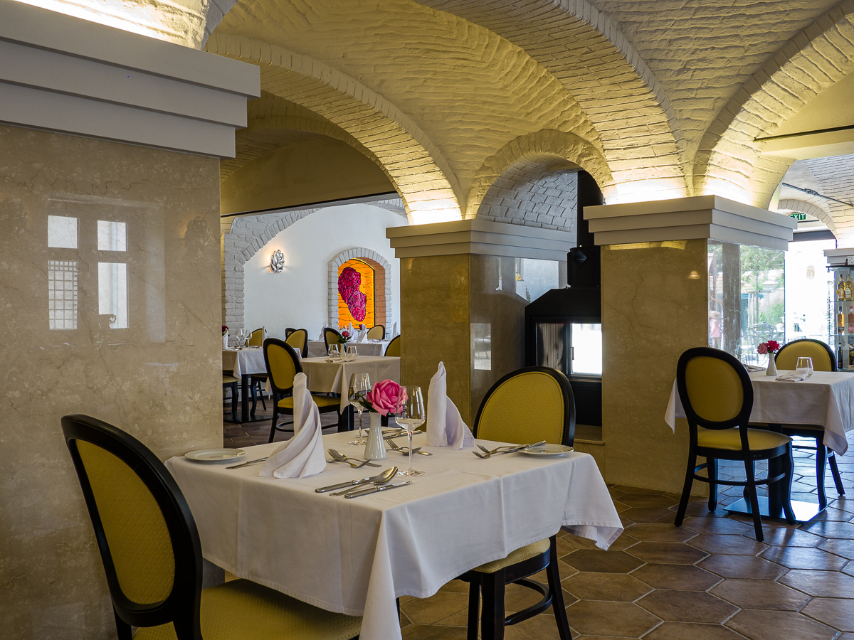 Reštaurácia Mária Henrieta v Medolandii je vsadená do nádherných historických priestorov s pôvodnými piliermi a stropnými klenbami. Tento priestor v klasickom štýle s modernými prvkami ponúka atmosféru gurmánskeho zážitku pre každého milovníka gastronómie a poteší všetky vizuálne a chuťové vnemy.