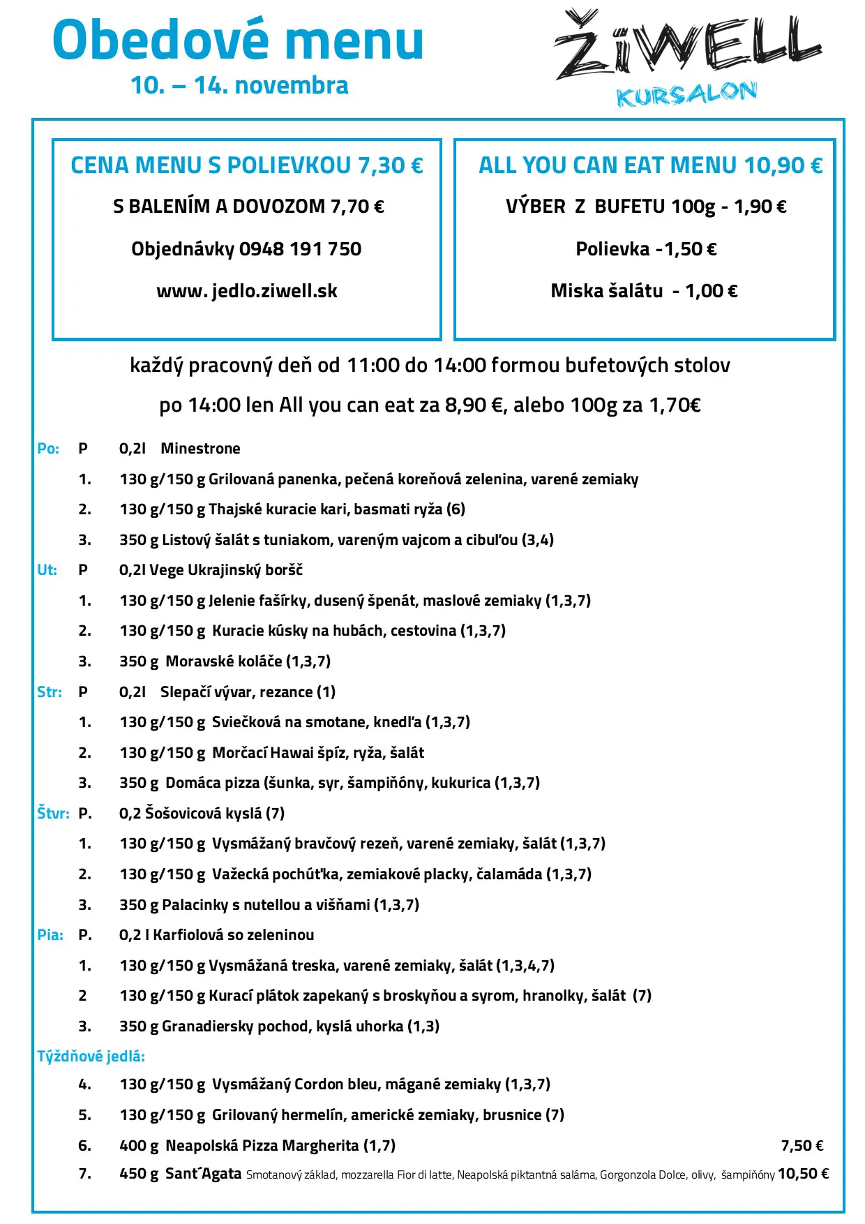 Obedové menu 10. novembra až 11. novembra ŽiWell Kursalon
