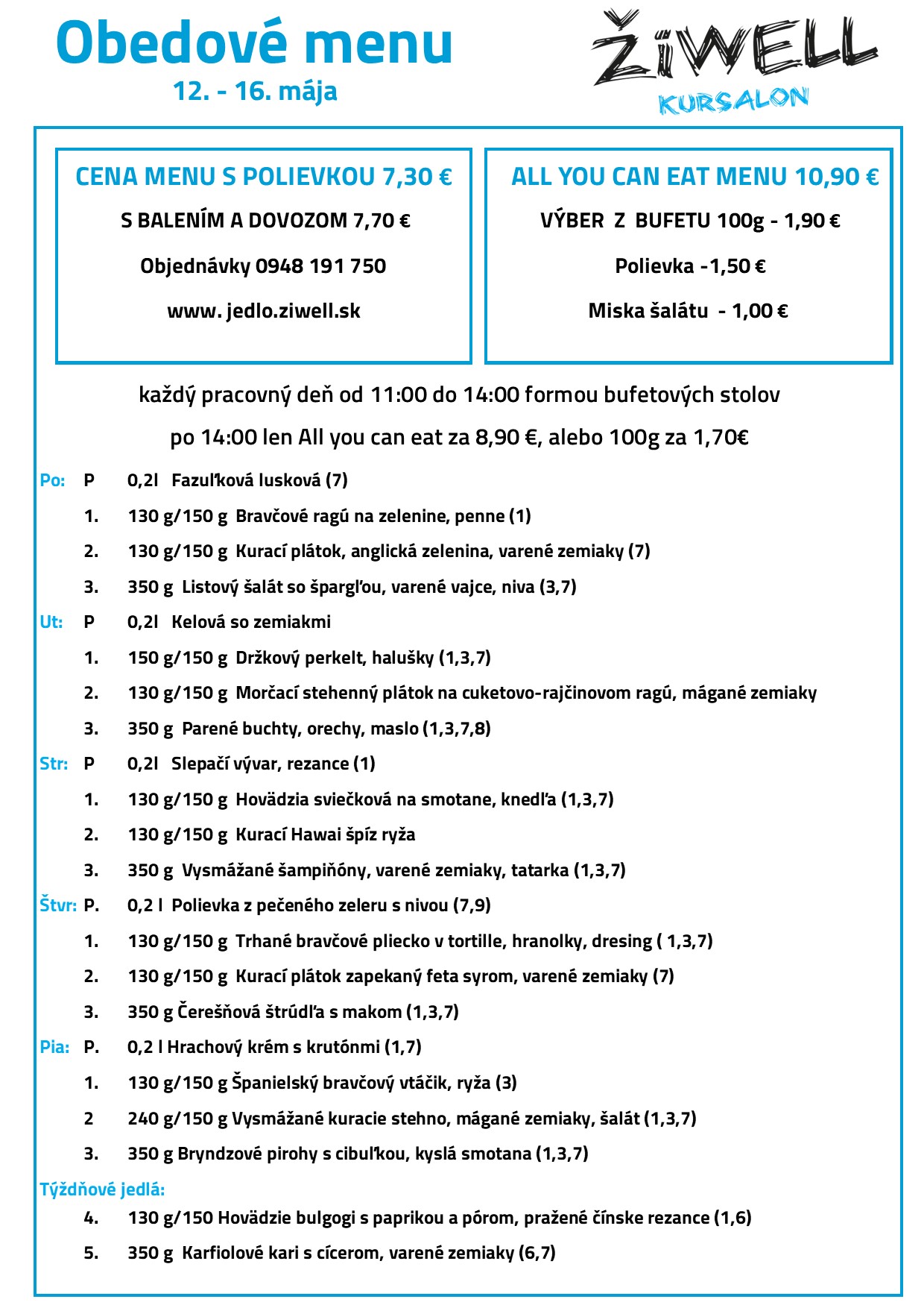 Obedové menu ŽiWell Kursalon 12.5. - 16.5.2025