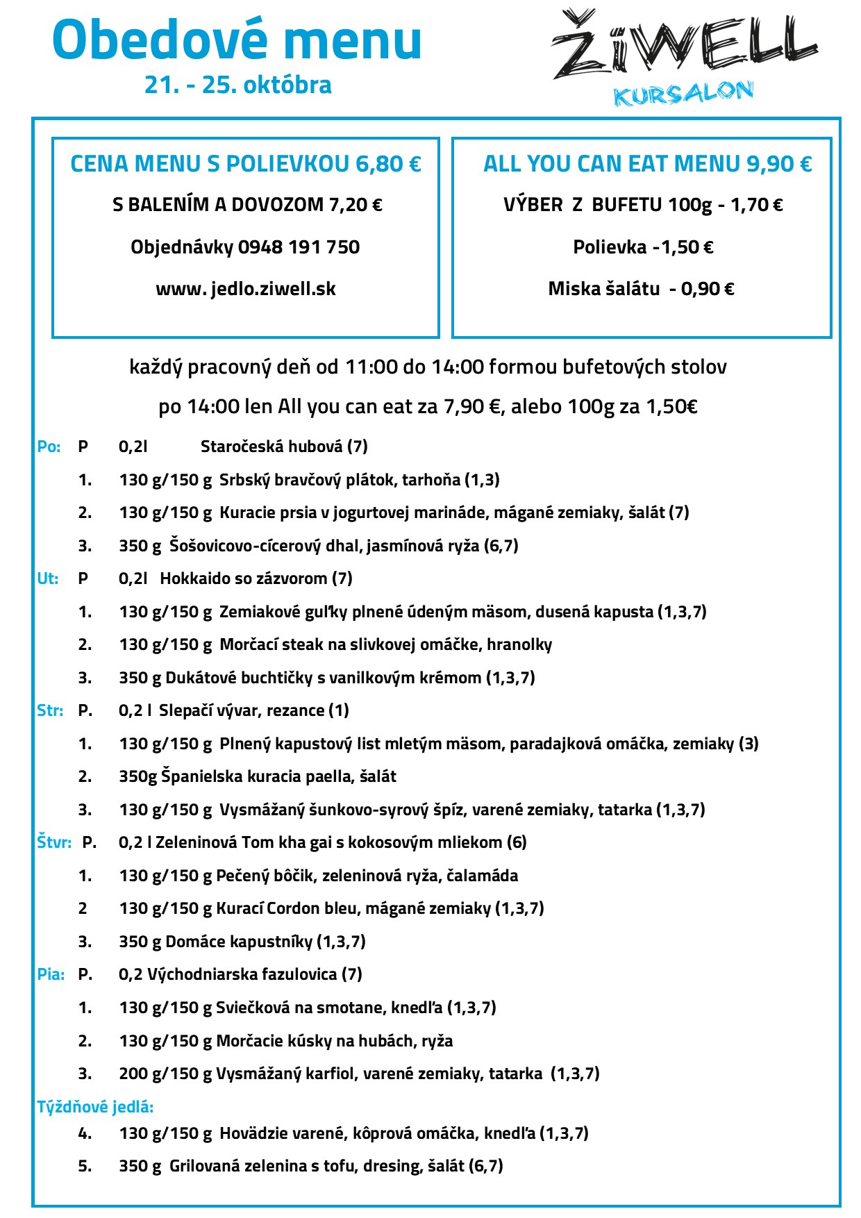 Obedové menu 21. októbra až 25. októbra ŽiWell Kursalon