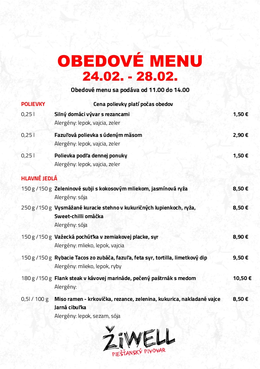 Obedové menu 24. februára až 28. februára Pivovar ŽiWell