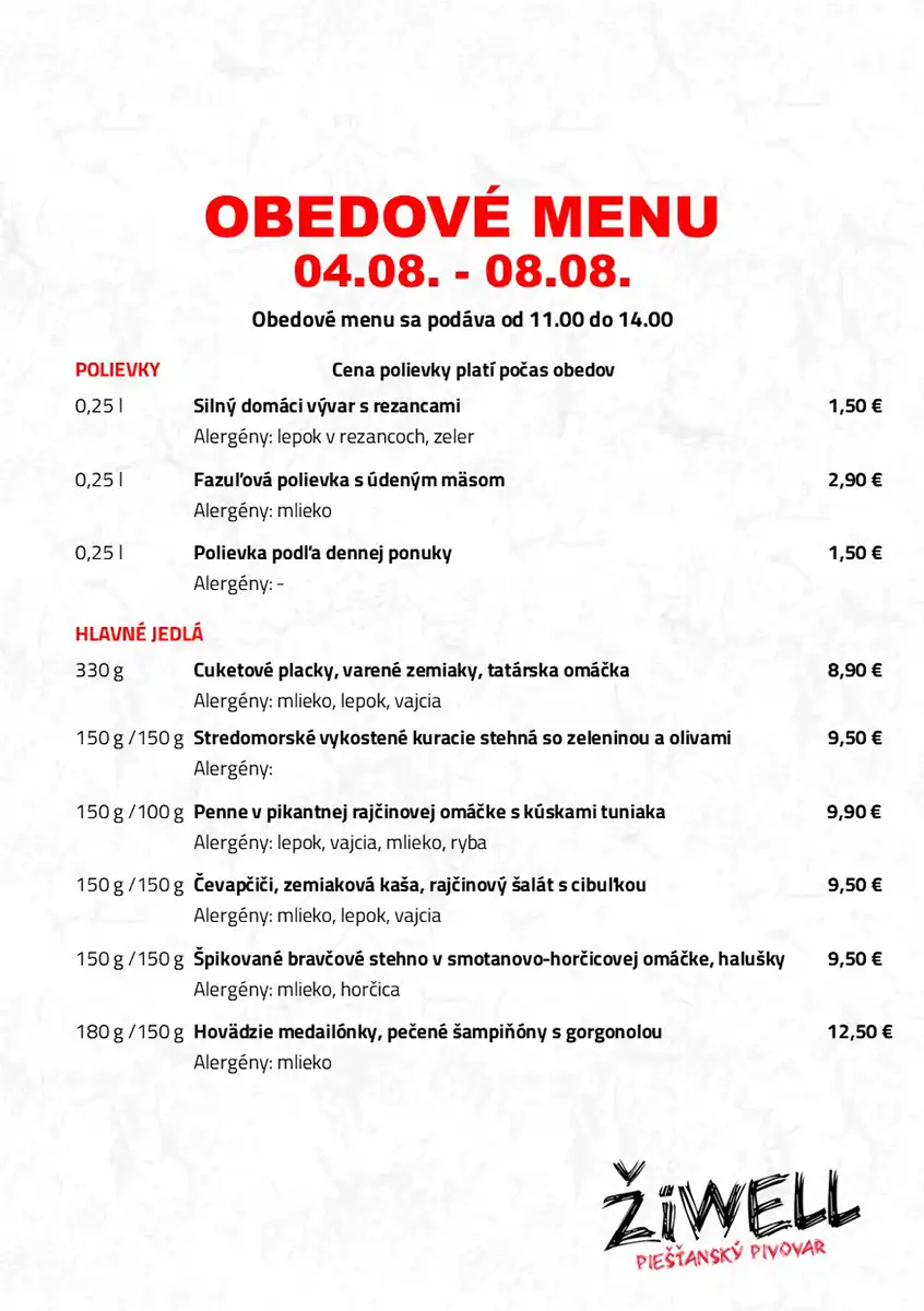 Obedové menu Pivovaru ŽiWell a ŽiWell Kursalonu 4.8. – 8.8.