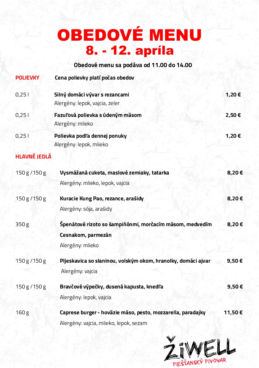 Obedové menu 8. apríl až 12. apríl 2024 Pivovar ŽiWell