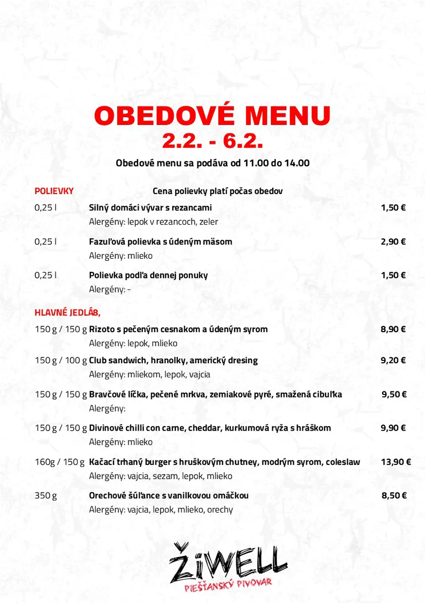 Obedové menu Pivovaru ŽiWell a ŽiWell Kursalonu 9.2. – 13.2.