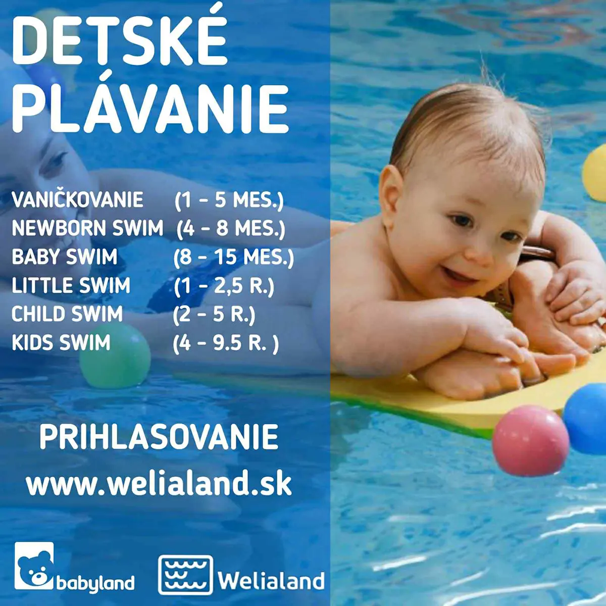 • BabySwim (8 – 16 mes.) – prvé zručnosti formou hry,