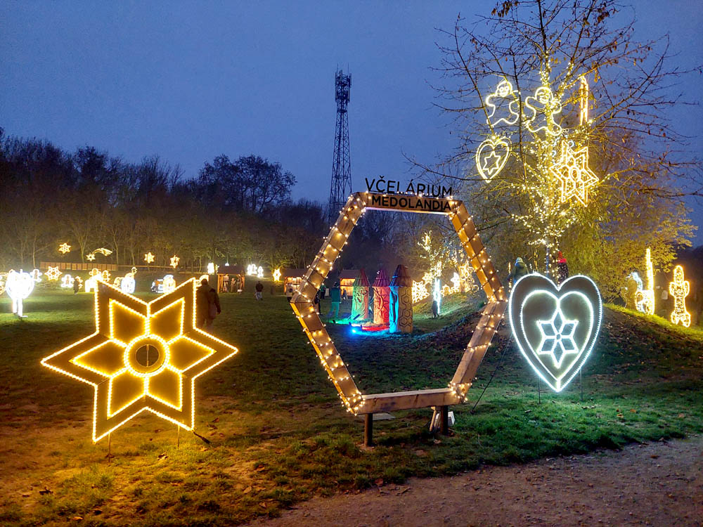 Veľké rozžiarené medovníčky rôznych tvarov, svietiace medovníkové postavičky, srdcia a hviezdy, vstupné brány s tisíckami svetiel, medová veža s lietajúcimi vločkami, rozprávajúca ježibabka s Jankom a Marienkou a medovníkovou chalúpkou, rozprávajúce úle, nasvietené domce so včelími úľmi, nasvietené rozárium s Uličkou zaľúbených a Uličkou šťastia, drevený betlehem v životnej veľkosti, strom zaľúbených s Beethovenovou schránkou lásky potešia všetkých návštevníkov.