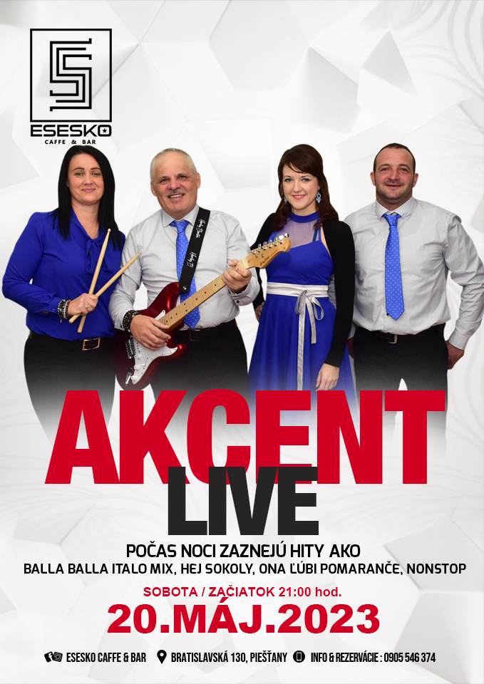 Sobota v Esesko Caffe & Bare – svetoznáme evergreeny i slovenské hity v podaní Akcentu
