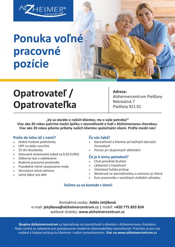 Alzheimercentrum ponúka voľné pracovné pozície