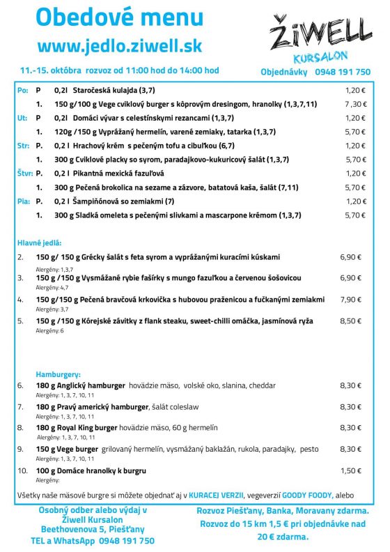 Vychutnajte si obed na terase Kursalonu či Piešťanského pivovaru ŽiWell. Jedlo je tiež možné si objednať na rozvoz alebo osobný odber. Na svoje si prídu aj vegetariáni.