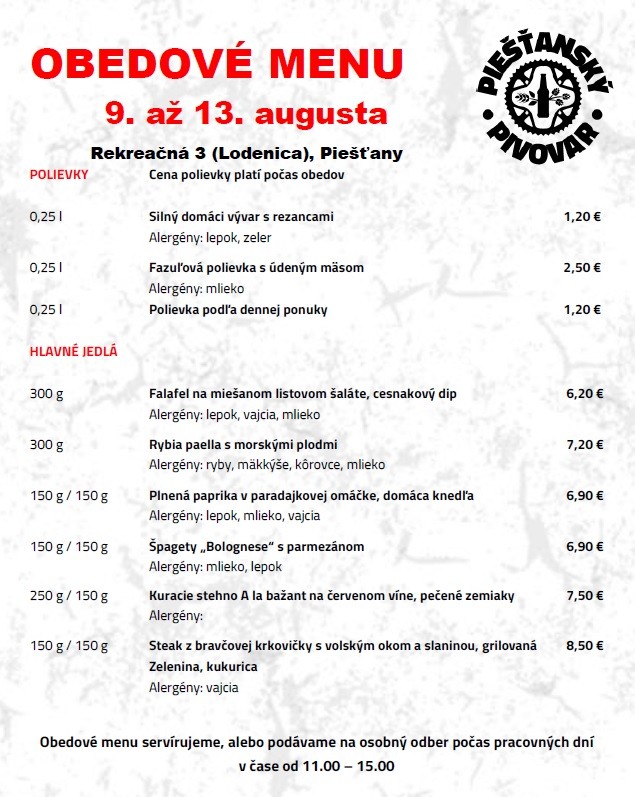 Vychutnajte si obed na terase Kursalonu či Piešťanského pivovaru ŽiWell. Jedlo je tiež naďalej možné si objednať na rozvoz alebo osobný odber. Na svoje si prídu aj vegetariáni.