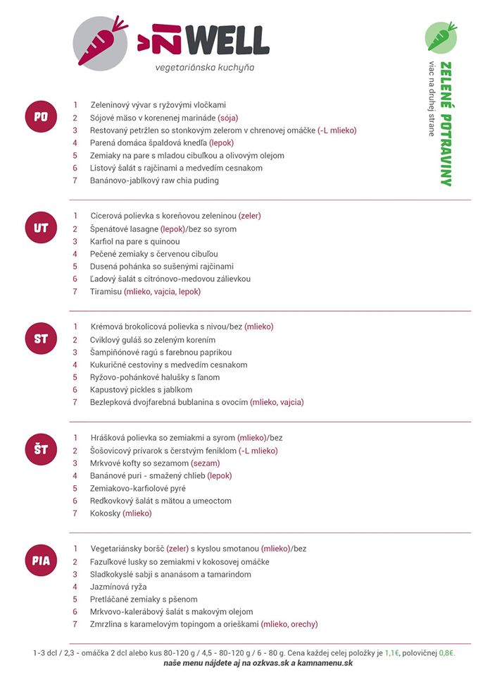 Kuchyňa komunitného centra ŽiWell v Piešťanoch kladie pri tvorbe vegetariánskych jedál veľký dôraz na zdravé suroviny. Jedlo si môžete nechať priviezť k sebe domov, nižšie nájdete detailnejší popis, ako si správne objednať a tiež číslo na donáškovú službu. Tento týždeň si budete môcť pochutiť napríklad na Špenátových lasagnoch, Karfiole na pare s quinoou, Kapustovom pickles s jablkom, Sladkokyslých sabji s ananásom a tamarindom, ale v menu nájdete aj sladké špeciality ako Tiramisu, Kokosky a dokonca domácu zmrzlinu s karamelovým topingom a orieškami.
