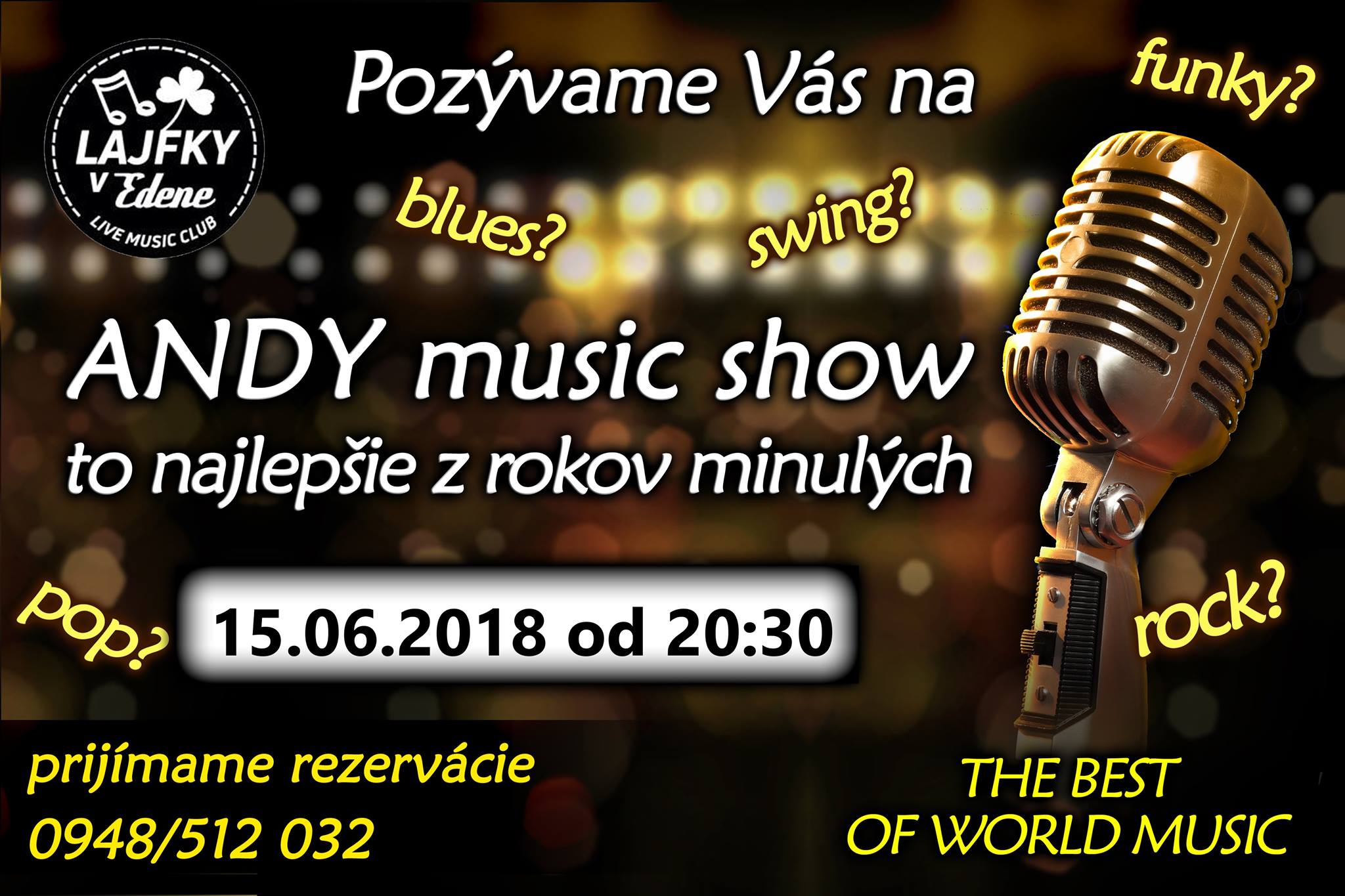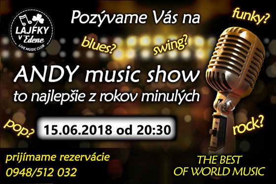Máte radi Rock? Pop? Funky? či Swing? To všetko a o veľa viac na Vás čaká od Andreja Depeša, ktorý Vám pripomenie časy minulé, ale hlavne zaspieva to najlepšie za posledné desaťročia. Príďte sa zabaviť a tí čo by si chceli vyskúšať zaspievať na pódiu, máte jedinečnú príležitosť, tak nepremeškajte v piatok 15. júna o 20:30 h.