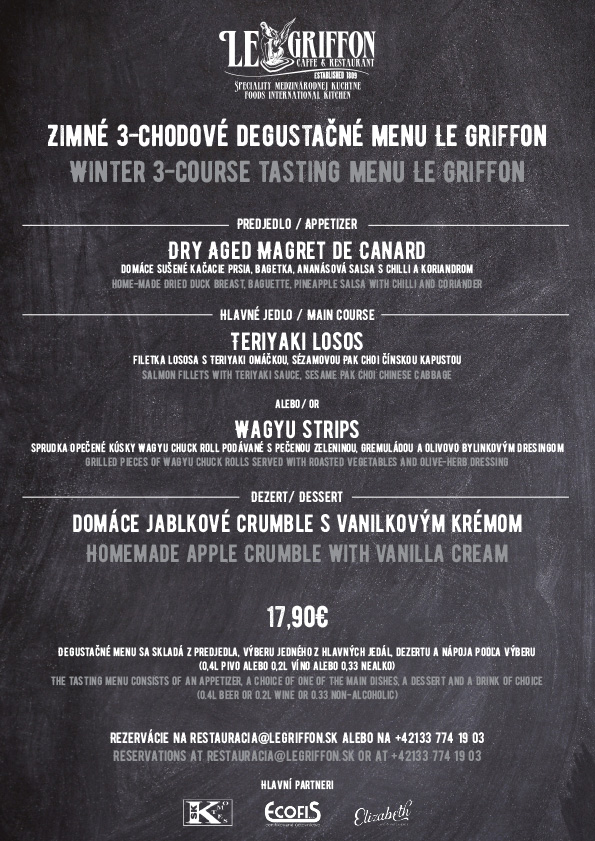 Rezervácie na restauracia@legriffon.sk alebo na +42133 774 19 03.