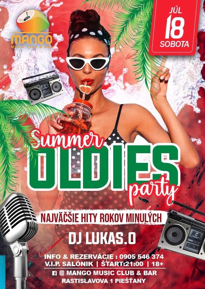 Stále žiadanejšia Oldies Party si už v Mangu našla svoje pevné miestečko a o jej obľúbenosti svedčí aj to, že si ju stále viac a viac pýtate. Tešiť sa na ňu môžete už túto sobotu 18. júla.