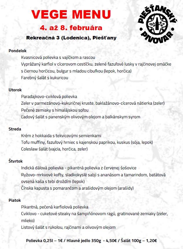 Zájdite na obed do pivovaru. Piešťanský pivovar ŽiWell ponúka obedové menu, ktoré tvorí viacero jedál a vybrať si môžete tiež z dvoch polievok podľa dennej ponuky. Ponuka druhov jedál sa mení v týždňových intervaloch. Tento týždeň si môžete dopriať napríklad bravčovú empanadu, či pečený kačacie stehno, ale tiež vyskúšať bezmäsité jedlo z vegetariánskej ponuky. Bonusom je rozvoz jedál priamo k vám, ak nestíhate prísť na obed do pivovaru. Stačí zavolať.