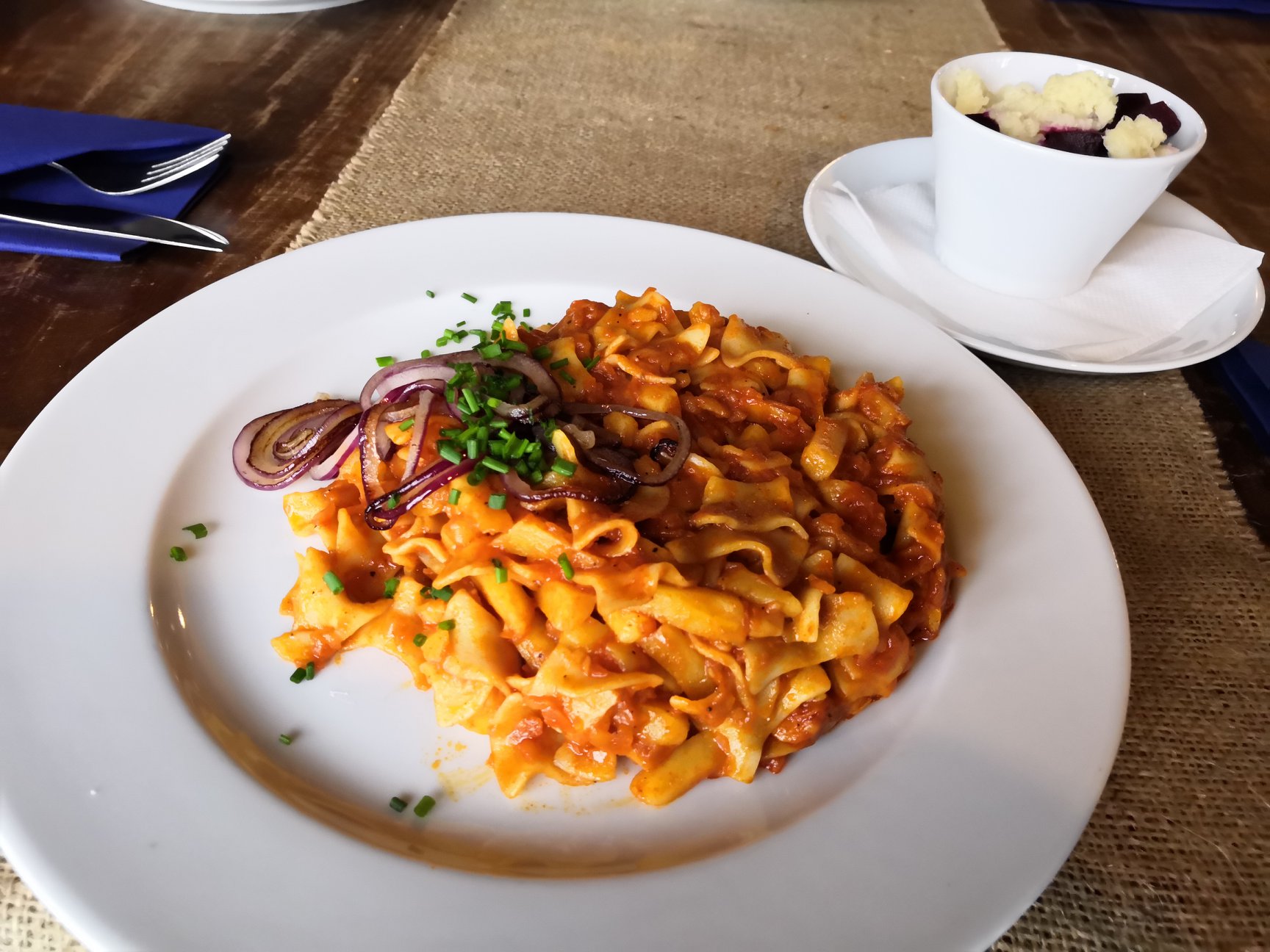 300 g Zemiakovo-cestovinový „granadier“ s domácou nakladanou cviklou a chrenom 4,10 €