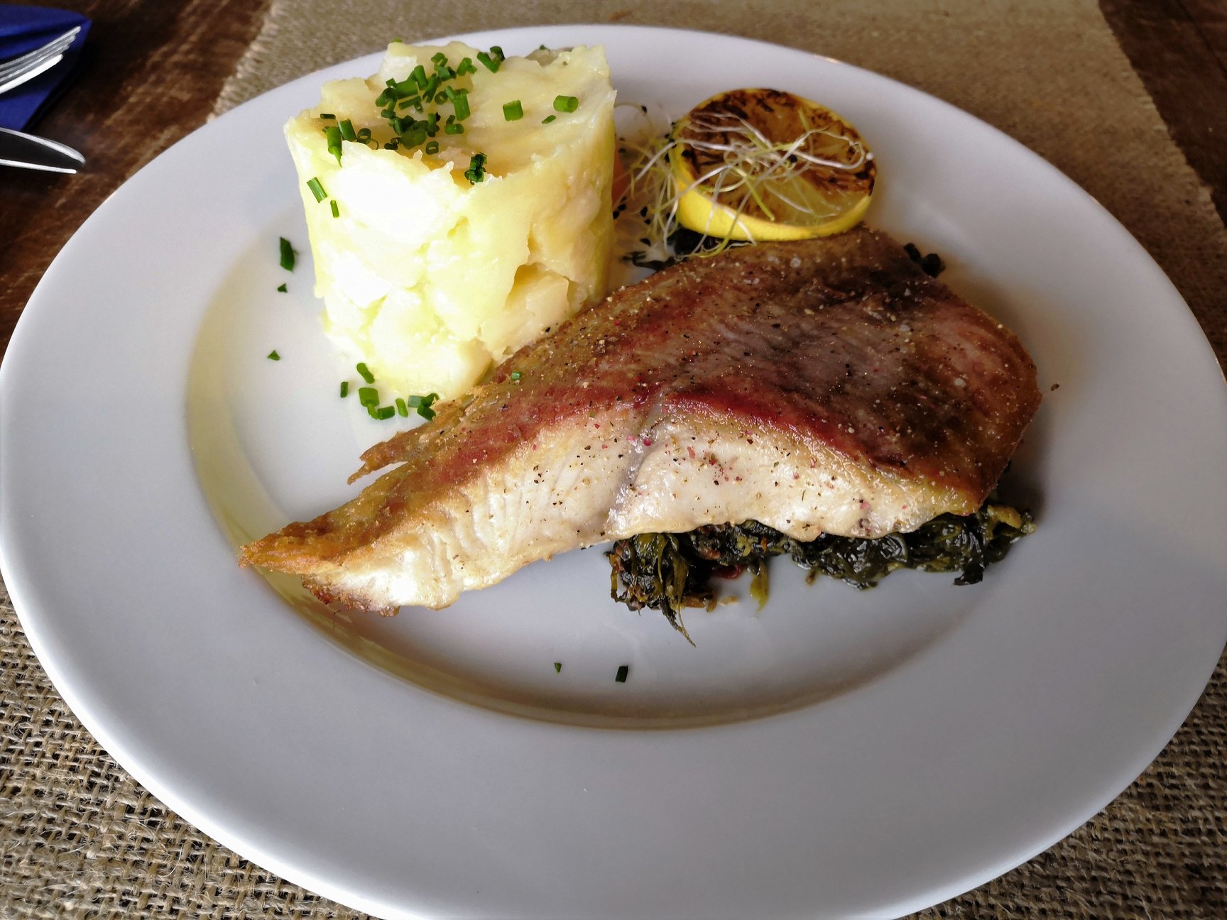 150 g / 150 g Sumček africký na florentýnsky spôsob so špenátom a sušenými paradajkami, maslové zemiaky 7,50 €