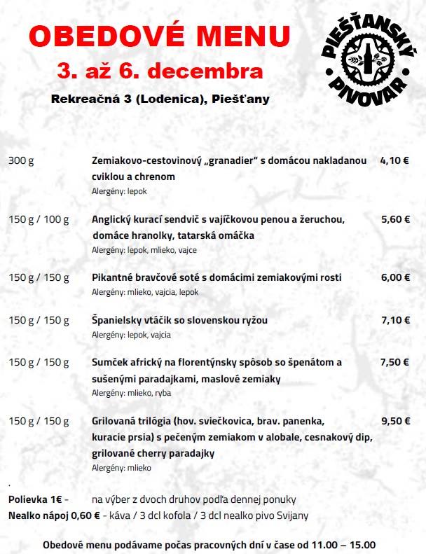 OBEDOVÉ MENU 3. až 6. decembra