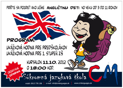 Chcete sa začať učiť angličtinu, alebo sa v nej zdokonaliť? Ak nájdete v nasledujúcom komixe správne aspoň tri chyby (je ich tam viac :-) ), pošlete nám ich na náš email, budete zaradení do žrebovania o 3-mesačný kurz anglického jazyka v hodnote 100 eur v súkromnej jazykovej škole CM Languages.