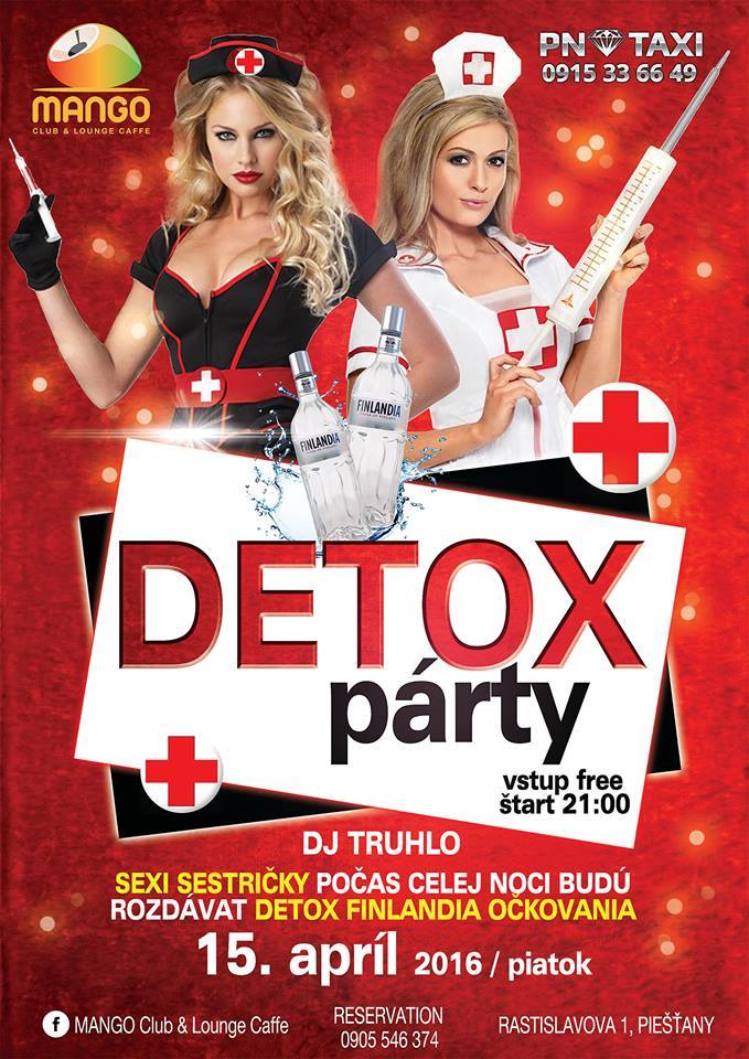 Po namáhavom týždni plného stresu a starostí je čas na poriadny detox. Najlepší je s vychladenou Finladiou priamo od krásnych sestričiek. O zábavu sa bude starať DJ Truhlo. Začíname piatok 15. apríla o 21.00 h. Vstup je free.