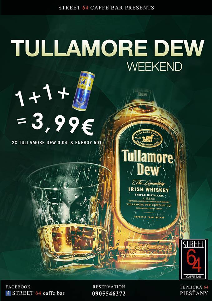 Milí naši návštevníci. V Street 64 Caffe Bare na Teplickej 64 v Piešťanoch je pre vás opäť pripravená super víkendová akcia! Dve chutné Tullamore Dew 0,04 l a k tomu Energy 501 dostanete tento víkend iba za 3,99 €! Tak príďte a spojte zábavu s jedinečnou chuťou Irish Whiskey! Tešíme sa na vás (20.3 – 22.3. 2015).