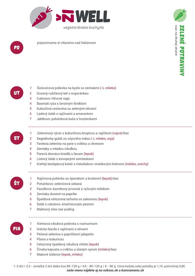 Kuchyňa komunitného centra ŽiWell v Piešťanoch kladie pri tvorbe vegetariánskych jedál veľký dôraz na zdravé suroviny. Jedlo si môžete nechať priviezť k sebe domov, nižšie nájdete detailnejší popis, ako si správne objednať a tiež číslo na donáškovú službu. Včera ste si na zdravých jedlách síce pochutiť nemohli, ale do konca týždňa je v menu naozaj pestrá ponuka. Nájdete v nej napríklad Cukinovo-hlivové ragú, Segedínsky guláš zo sójového mäsa, Fazuľkovo-karotkový prívarok s ryžovým mliekom, Krémovú cibuľovú polievku s rozmarínom i Krehký bezlepkový koláč s čokoládovo-orieškovým krémom a ešte mnoho ďalších špecialít.