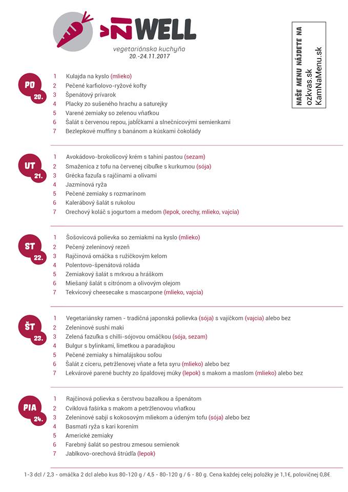 Kuchyňa komunitného centra ŽiWell v Piešťanoch kladie pri tvorbe vegetariánskych jedál veľký dôraz na zdravé a kvalitné suroviny. Jedlo si môžete nechať priviezť domov i na pracovisko, nižšie nájdete detailnejší popis, ako si správne objednať a tiež číslo na donáškovú službu. V menu tento týždeň nájdete napríklad Kulajdu na kyslo, Placky zo sušeného hrachu a saturejky, Smaženicu z tofu na červenej cibuľke s kurkumou, Polentovo-špenátovú roládu, ale aj Bulgur s bylinkami, limetkou a paradajkou, Cviklovú fašírku s makom a petržlenovou vňaťkou, Tekvicový cheesecake s mascarpone a ešte veľa ďalších chutných a zdravých jedál.