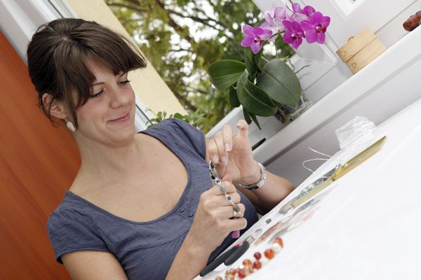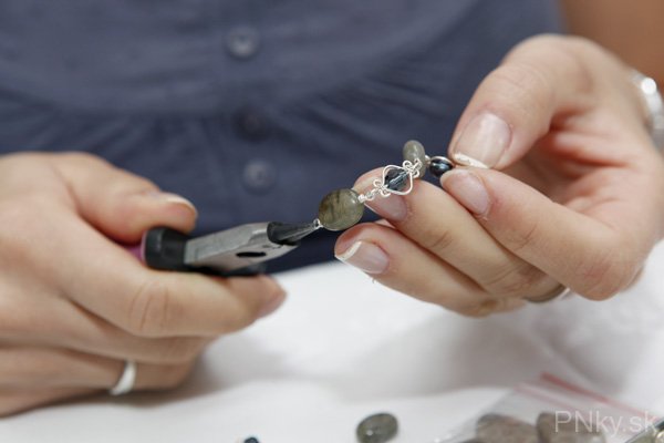 Väčšinou tvarujem strieborné drôty rôznej hrúbky, omotávam korálky, robím z drôtov háčiky, druhá fáza je navlekanie a výroba samotného šperku.