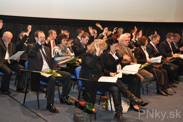 prevzatie insígnií a prevzatie vedenia ustanovujúceho zasadnutia novozvoleným