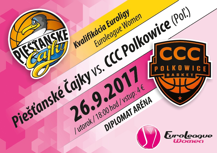 Piešťanské Čajky sa pobijú o účasť v najlepšej ženskej medzinárodnej súťaži v Európe. Basketbalistky z kúpeľného mesta čaká už budúci týždeň kvalifikácia Euroligy, kde sa o postup do základnej skupiny pobijú s poľským klubom CCC Polkowice. Čajky najskôr v utorok 26. septembra privítajú poľský veľkoklub o 18.00 hodine v Diplomat aréne a už o tri dni, v piatok 29. septembra ich čaká odveta na palubovke Polkowic.