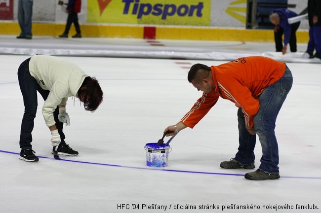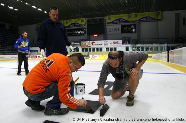 Fanúšikovia klubu ŠHK37 Piešťany sa v nedeľu 6. septembra podvečer zišli pri obnove hokejového značenia a reklám na ľadovej ploche Easton Arény. Tak ako minulý rok pred začiatkom sezóny pomohol fanklub Havranov so skrášlením štadióna a pripravil ho na nadchádzajúcu sezónu. Tú odštartujú naši hokejisti už tento piatok v Skalici.