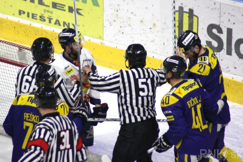 V čase 40:59 ju so šťastím využil Vladimír Nemec. Puk sa od jeho korčúľ odrazil do zvolenskej brány, rozhodcovia posúdili, že to bolo bez úmyslu – 4:1. V 52. minúte pridali Piešťanci piaty gól. Zvolenčania si vytvárali tlak, avšak domácim sa podarilo dostať ho von z pásma. Tu sa ho zmocnil Haring, presne prihral pred bránu Václavovi Stupkovi a ten ho len jemne tečoval za chrbát zvolenského brankára. V 59. minúte pridali domáci ešte jeden klinček do zvolenskej rakvy. Tento raz bol jeho autorom Tibor Melichárek 6:1.