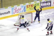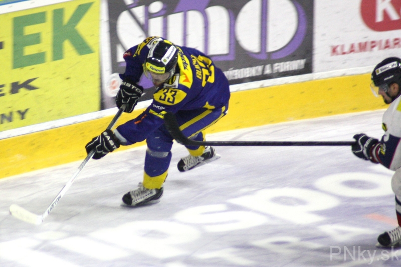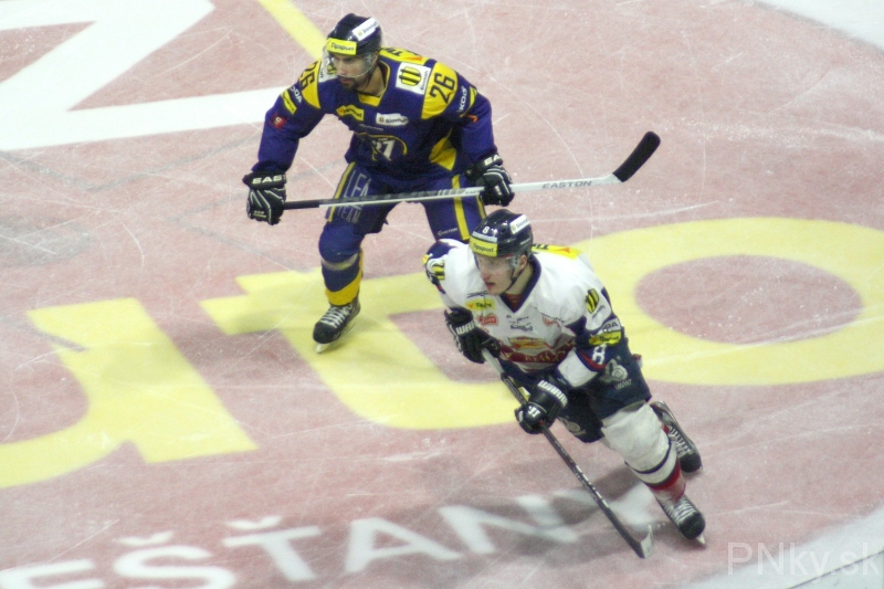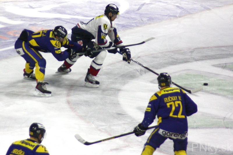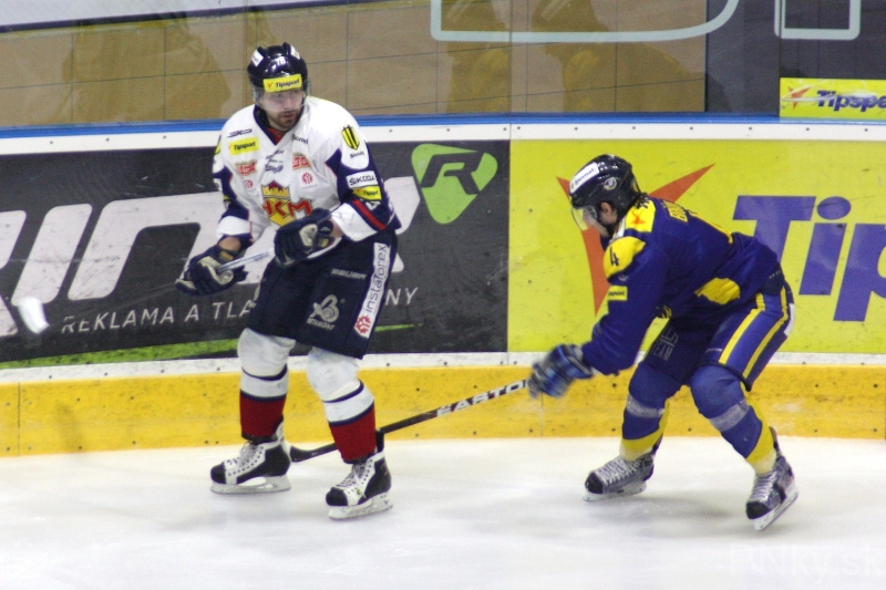 Domáci hokejisti sa ujali vedenia už v druhej minúte stretnutia. Henrich Ručkay nahodil puk od modrej na brankára hostí, ktorému nešťastne prepadol cez lapačku do siete. Druhý gól pridali domáci v závere tretiny. Minútu pred koncom si dal sólo Samir Saliji a spomedzi kruhov prestrelil Šimka.