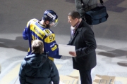 Domáci hokejisti sa ujali vedenia už v druhej minúte stretnutia. Henrich Ručkay nahodil puk od modrej na brankára hostí, ktorému nešťastne prepadol cez lapačku do siete. Druhý gól pridali domáci v závere tretiny. Minútu pred koncom si dal sólo Samir Saliji a spomedzi kruhov prestrelil Šimka.