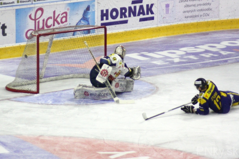 V polovici tretej tretiny mali Zvolenčania príležitosť pri ich už druhej presilovke 4:3 v tomto dueli. Výborného piešťanského gólmana sa im prekonať nepodarilo. Naopak o pár minút hrali presilovku domáci a zvýšili na 4:0. Gól si po sólovom nájazde pripísal Jakub Ručkay.
