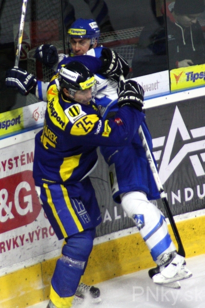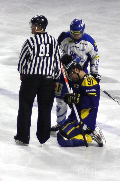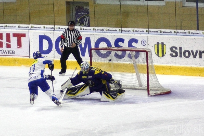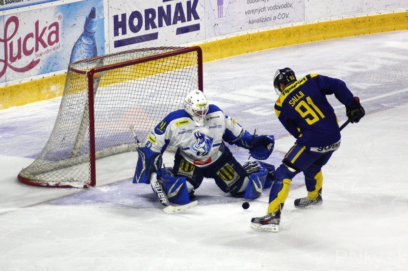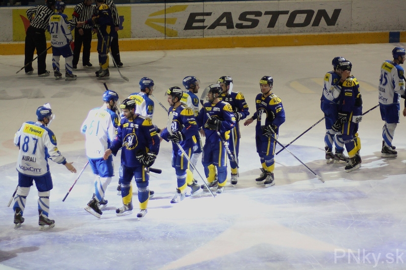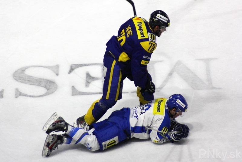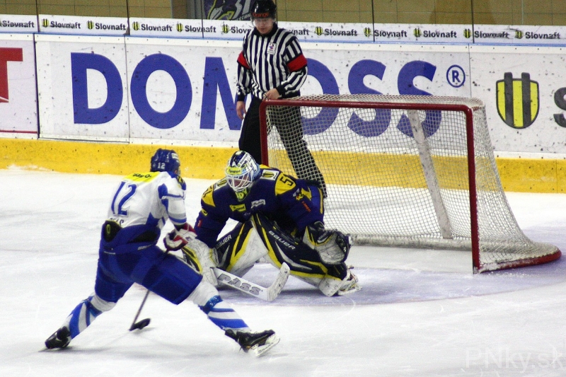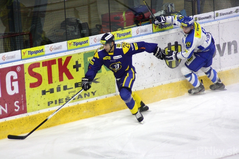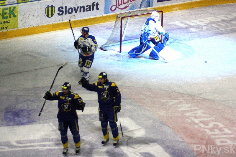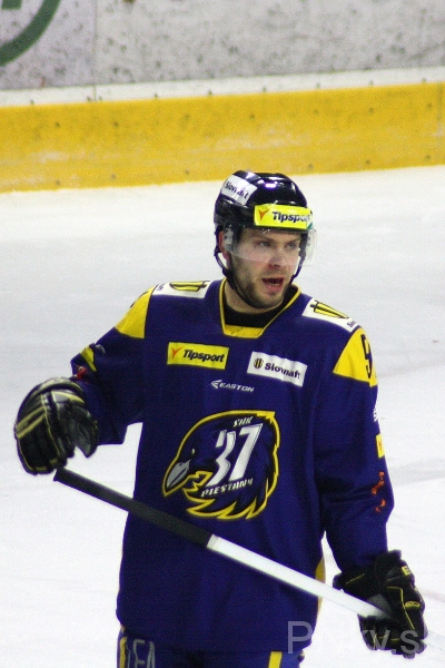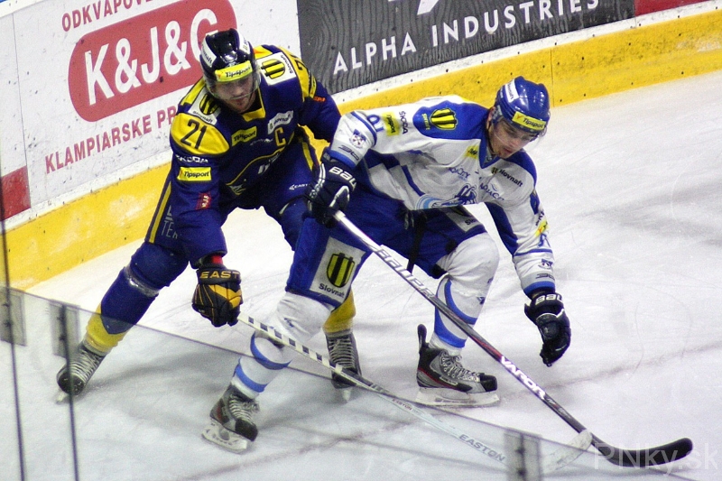 Druhá tretina bola bezgólová. Na začiatku tretej Popradčania zaslúžene vyrovnali. Skóroval nedôsledne bránený Michael Vandas. V polovici 54. minúty sa Poprad ujal vedenia. Domáceho brankára Tomeka prekonal švihom Peter Klouda. Piešťanci však dokázali o niečo vyše minútu odpovedať. Po Salijiho prihrávke skóroval Marek Mertel – 3:3. Do konca riadnej hracej doby sa už ani jednému mužstvu nepodarilo strhnúť víťazstvo na svoju stranu, a tak nasledovalo predĺženie. V ňom sa tiež ani jedno družstvo nepresadilo, rozhodovali teda až samostatné nájazdy. V nich v druhej sérii skórovali Saliji a Vaic. Ďalší nepremenili. O výsledku napokon rozhodol v piatej sérii hosťujúci Balán, keď predtým nájazd nepremenil domáci Melichárek. Poprad tak získal dva body, kým domáci sa museli uspokojiť len s jedným.