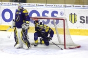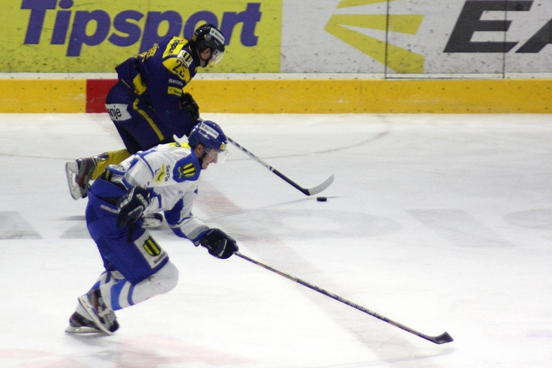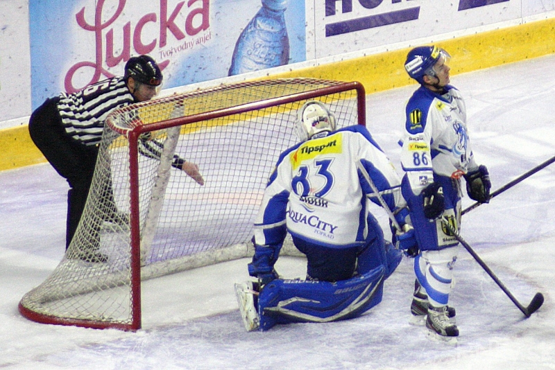 Skóre zápasu otvorili na začiatku trinástej minúty domáci. Kapitán Richard Filip spoza brány nahodil puk na popradského brankára Sidora, ktorému prepadol za chrbát. Štyri a pol minúty pred koncom prvej tretiny sa presadili aj hostia. Vlastný gól dal svojou korčuľou domáci obranca Bučka, pripísaný však bol Ľubomírovi Vaicovi – 1:1. Neuplynuli ani dve minúty a Havrani viedli znovu. Na 2:1 zvýšil po peknej akcii Melichárka Samir Saliji.