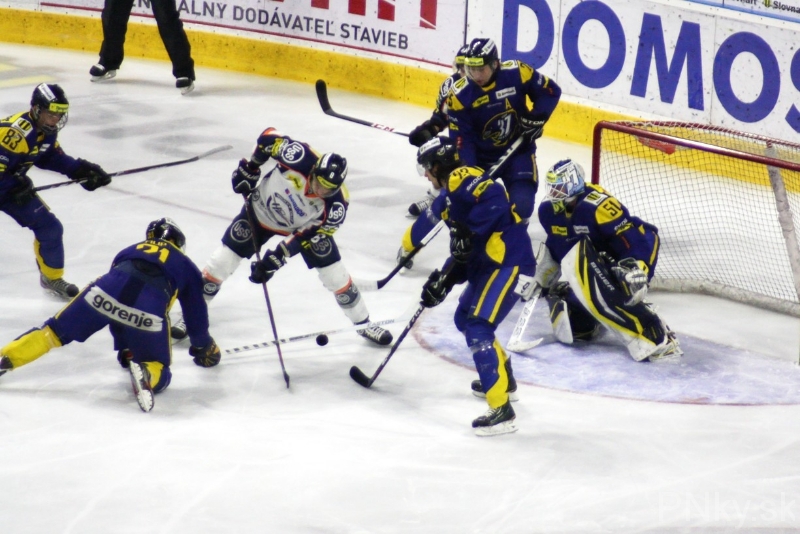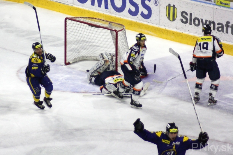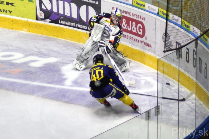 Úvod druhej tretiny vyšiel domácim viac ako výborne. Po pol minúte hry skóroval junior Filip Hudec, keď do siete dorazil puk po sóle a strele Tibora Melichárka. V čase 28:27 sa presadili aj hostia. Strelu Matúša Chovana síce Tomek stlmil, avšak puk sa za pomoci padajúceho obrancu dostal za chrbát domáceho brankára – 2:1. Domáci odpovedali na kontaktný gól najlepšie ako mohli. V závere druhej tretiny využili dve presilovky a zvýšili na 4:1. Strelcom tretieho gólu bol Martin Škadra, štvrtý si pripísal Jakub Ručkay.
