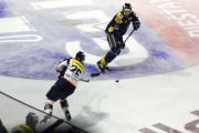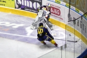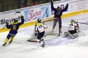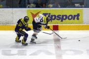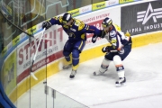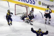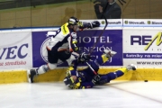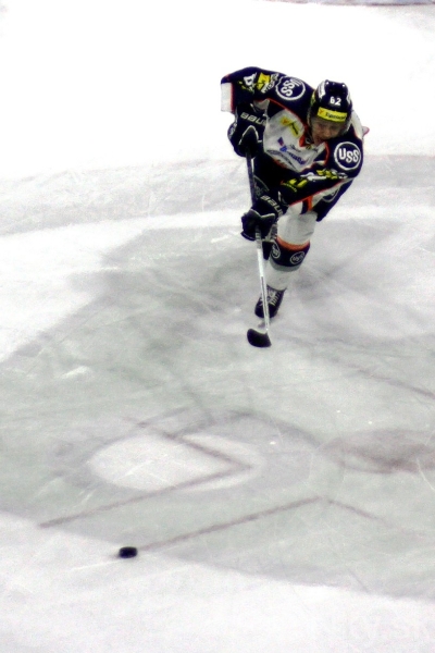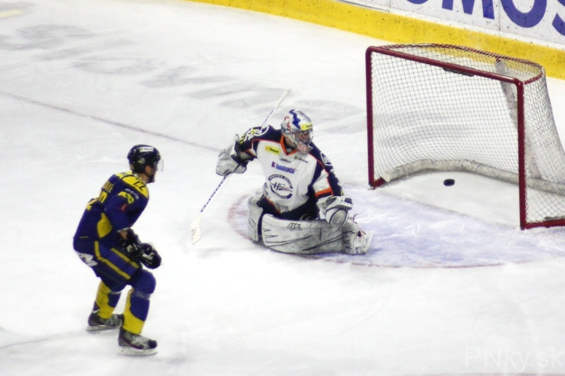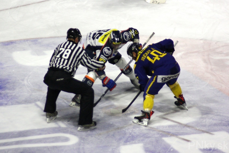 Domáci Havrani hrali v úvode prvej tretiny 3 presilové hry, ale gól nedali. Diváci sa dočkali až v polovici 14-tej minúty, keď z ostrého uhla strieľal Marek Mertel – 1:0.