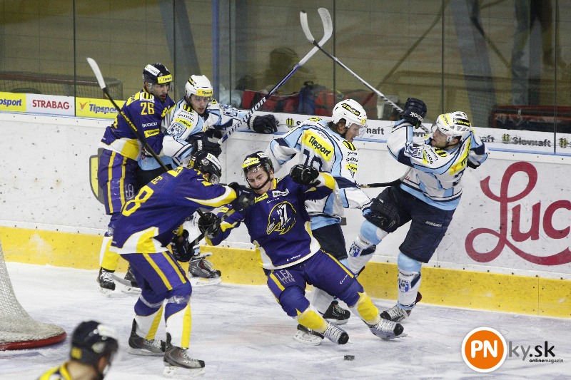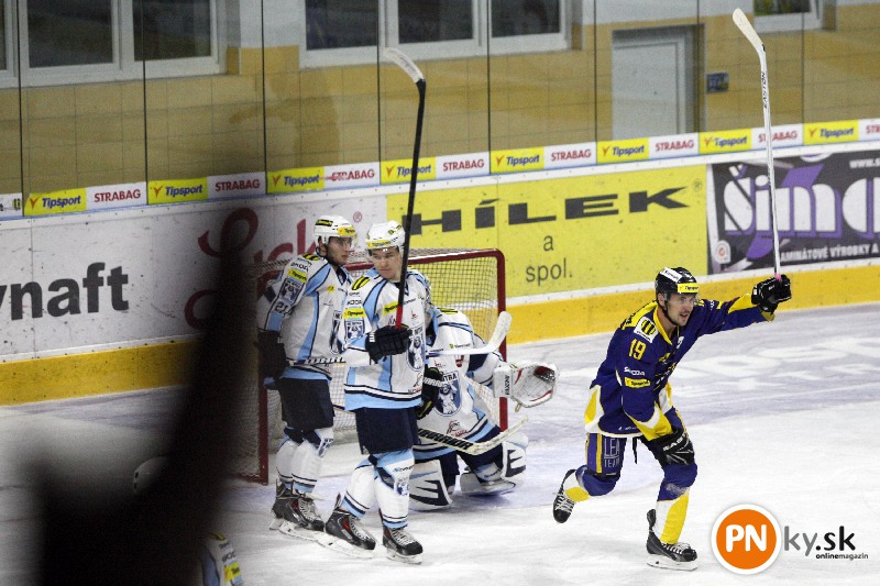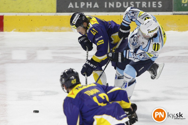 V prvej tretine diváci gól na piešťanskom štadióne nevideli, i keď hokejisti na oboch stranách mali viacero možností na skórovanie. Ako prví dostali puk do súperovej bránky hostia. Na začiatku dvadsiatejpiatej minúty sa Havranom nepodarilo vyhodiť puk a rozhodenú obranu od modrej prestrelil Peter Konig. Domácim sa sa podarilo odpovedať o deväť minút. Strelou s pomedzi kruhov sa po peknej prihrávke od Melichárka presadil Samir Saliji.