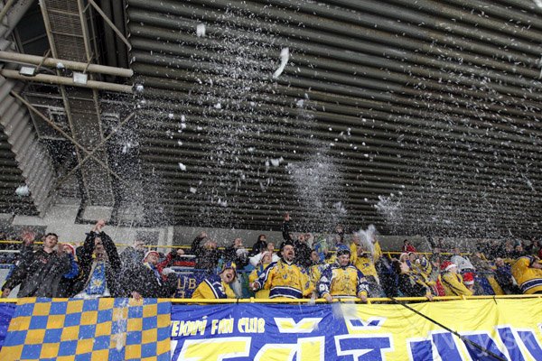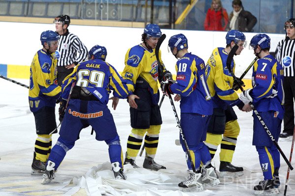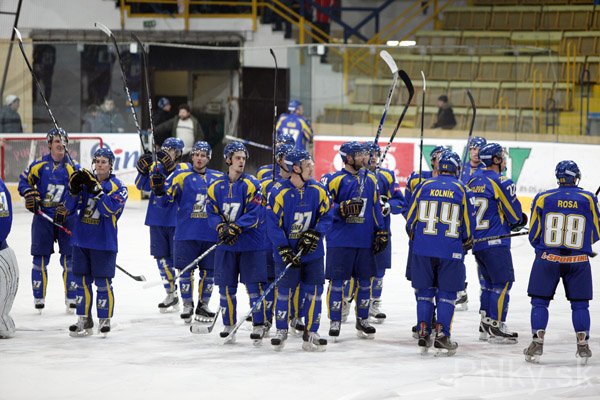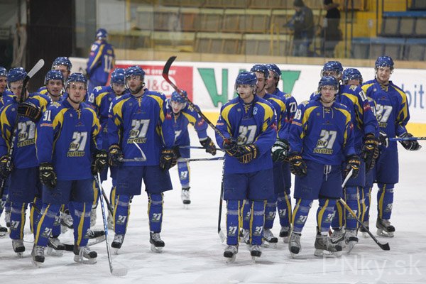 Náš súper z minuloročného finále nemá veľmi dobrú sezónu. Hráči Prešova figurujú po tomto kole na predposlednom mieste, síce s desať bodovým náskokom na posledné Brezno, ale stále ešte nie s pokojom v duši, pretože pri určitom zlom postavení hviezd sa mi ľahko môže pritrafiť, že sa s prvou ligou možno aj rozlúčia. Ťažko opisovať to, [youtube]http://www.youtube.com/watch?v=gLyB2QFU8PQ[/youtube]čo nám títo hráči predviedli v druhej polovici zápasu. Asi to bude zmes frustrácie, neschopnosti, bezmocnosti a u niektorých asi aj zlého zdravotného stavu. To, že to niektorí z Prešovčanov asi nemajú v hlave v poriadku nám približne v polovici tretej tretiny predviedol pán menom Michal Koma. Po faule na Jana Románka si neodpustil likvidačný faul, krošček do krku, faul ktorý nemá nič spoločné s hokejom a ani so zdravým rozumom. Na následné Janove výzvy na súboj už pán Koma nemal jemne povedané pary, lebo zbabelo sa odporúčal na striedačku. Tak isto brankár Zima, ex Topoľčanec Náhlik, Závadský, Chovan, kapitán Kover, ale aj iní by potrebovali nejaké to milé slovo a pohladenie na upokojenie. Asi také, akým naši “kľudnili“ minulý rok pánov z Kežmarku.