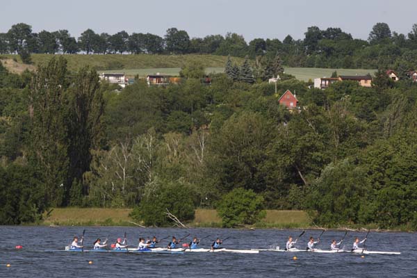 Viac ako tristo pretekárov z 18-tich európskych krajín potrápil najmä v prvý deň pretekov v piatok 25. mája silný severný vietor. V tento deň sa pretekalo na 500 metrov. Z Piešťancov sa najviac darilo Simone Šamkovej, ktorá v K1 žien do 23 rokov obsadila druhú priečku a v K2 spolu s Danou Ivanovovou zvíťazili. Medailové umiestnenie zaznamenala ešte Linda Blahová, ktorá bola členkou striebornej K4 kadetiek.