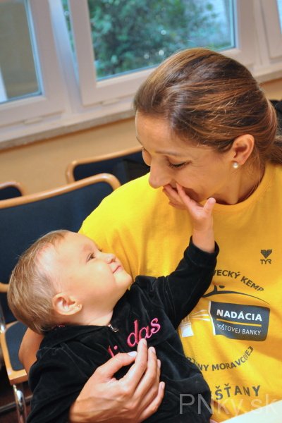 Prázdniny v Piešťanoch trávi Martina Moravcová pri bazéne. K starostlivosti o jej trinásťmesačnú dcéru Karolínku pribudli našej najlepšej plavkyni desiatky ďalších detí, ktorým počas prebiehajúceho plaveckého kempu odovzdáva svoje skúsenosti.