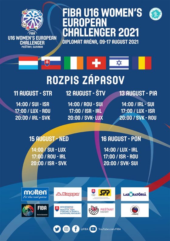 Dnes štartuje v Piešťanoch basketbalový Challenger dievčat do 16 rokov zo šiestich európskych krajín – Slovenska, Luxemburska, Írska, Švajčiarska, Izraelu a Rumunska. Tzv. challengerov sa hrá viacero a FIBA Europe nimi pre tento rok nahradila tradičné európske šampionáty jednotlivých divízií.
