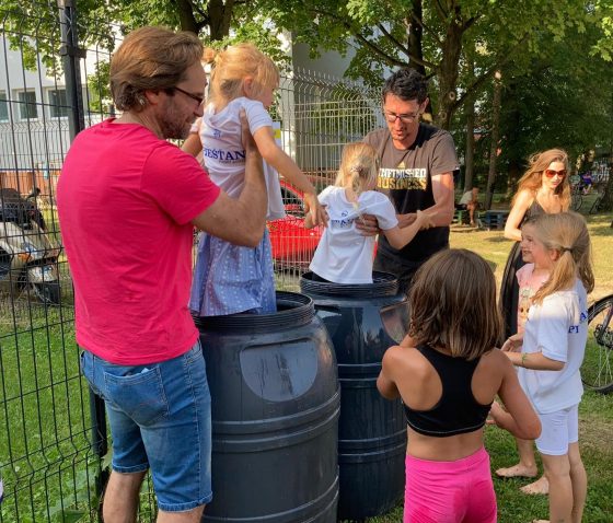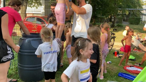 Po krátkom oddychu a malom občerstvení, prišla čerešnička v podobe namáčania detí v sudoch plných vody, ktorú si deti užívali asi najviac.