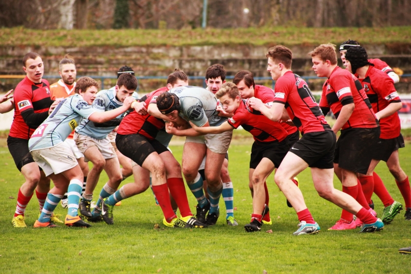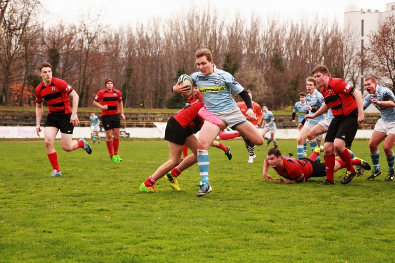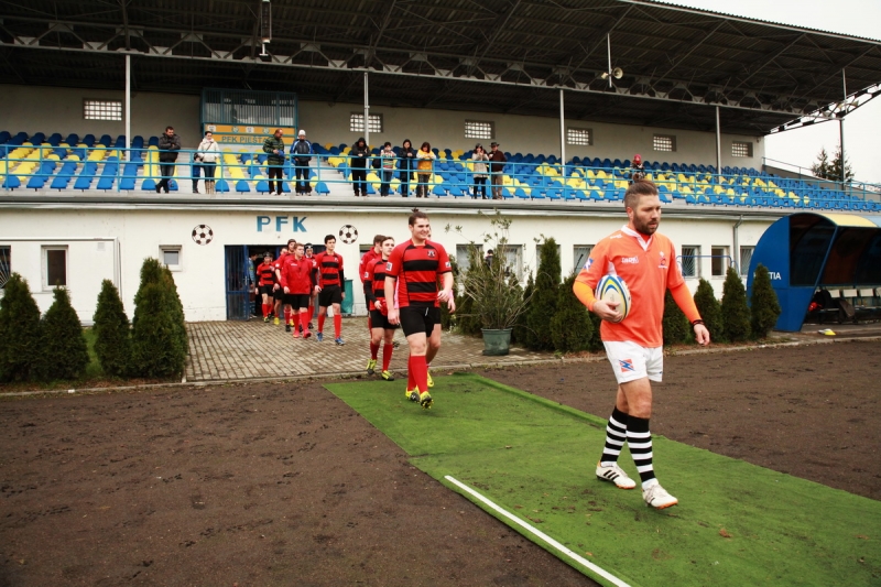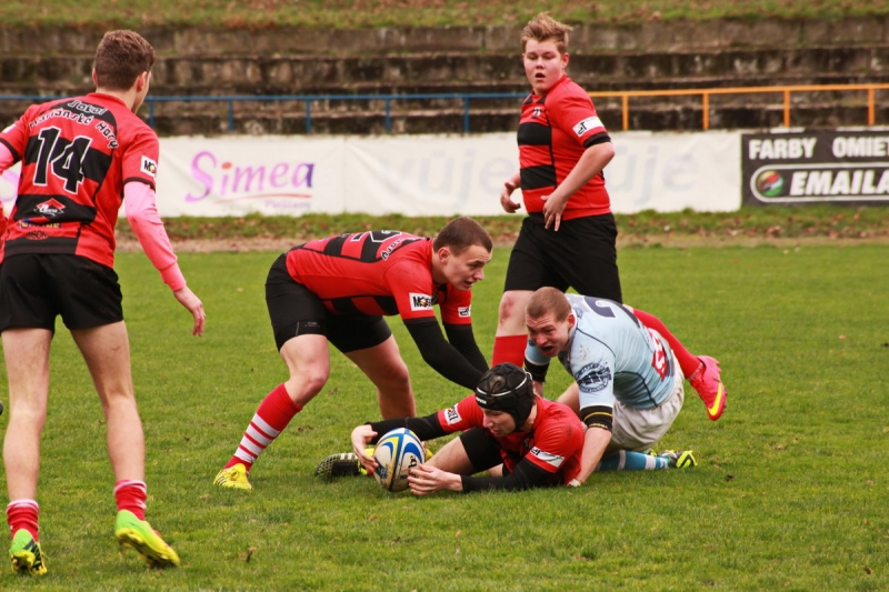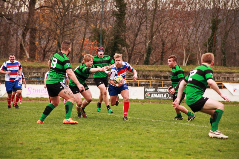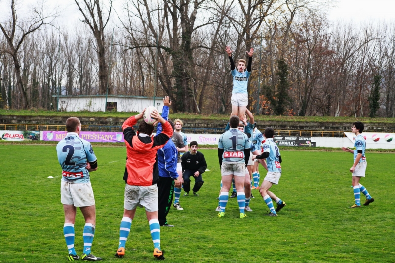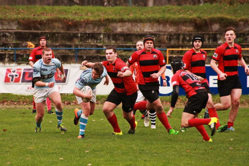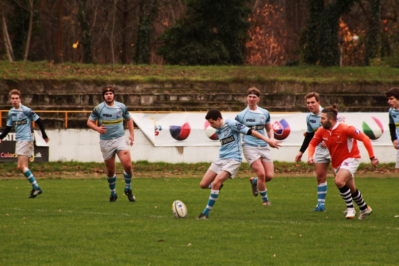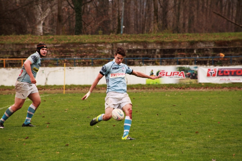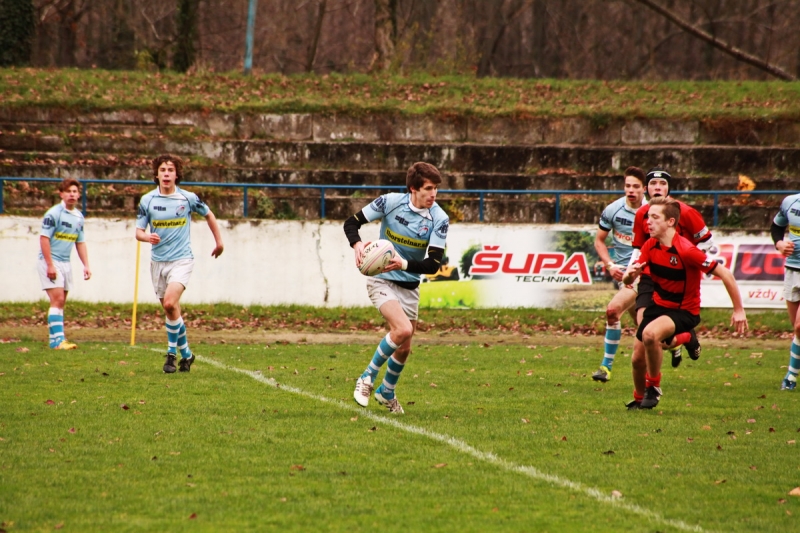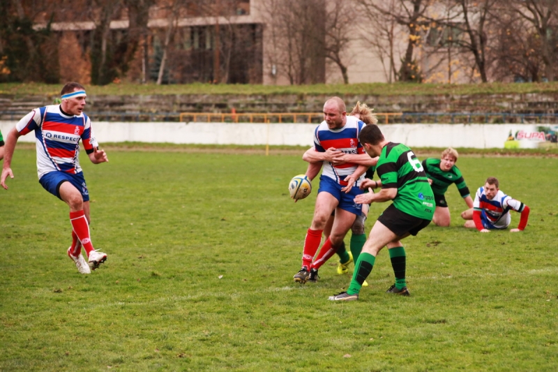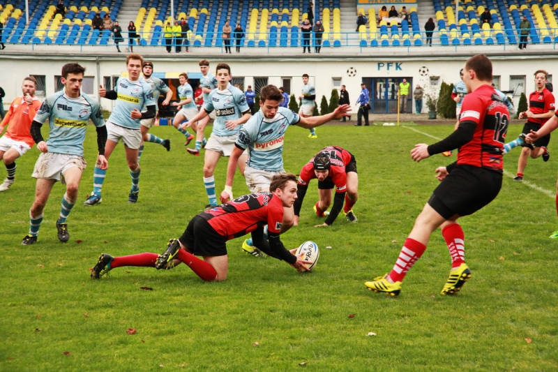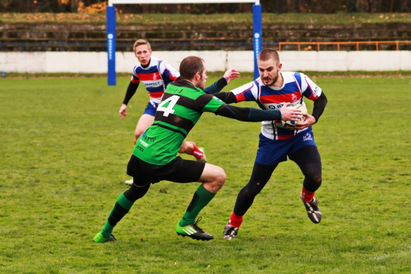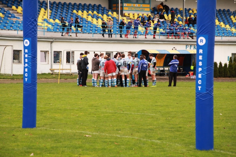 Futbalový štadión PFK patril v priebehu včerajšej soboty 21. novembra dvom rugbyovým zápasom. V prvom sa predstavili hráči TJ Sokol Mariánske Hory proti reprezentácii SR U18, ktorej prevažnú časť tvoria hráči Rugby Union Clubu Piešťany. Naši osemnásťroční a mladší hráči síce podľahli v pomere 13:15, ale za svoj výkon proti silnému súperovi sa určite nemusia hanbiť. V ďalšom stretnutí si zmeral sily výber slovenskej ligy s tímom RC Dragon Brno, v ktorom naši muži podľahli českému klubu 10:17.