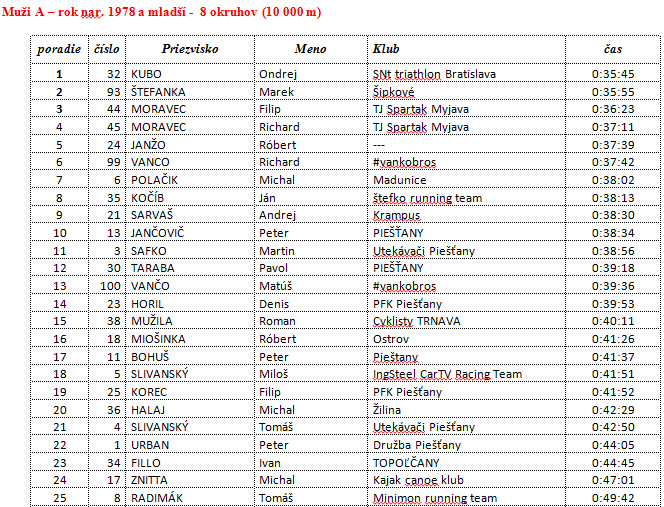 1. Ondrej Kubo – SNt Triathlon Bratislava 00:35:45