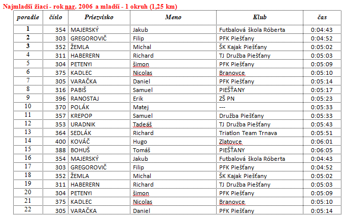 Najmladší žiaci – 1 250 metrov